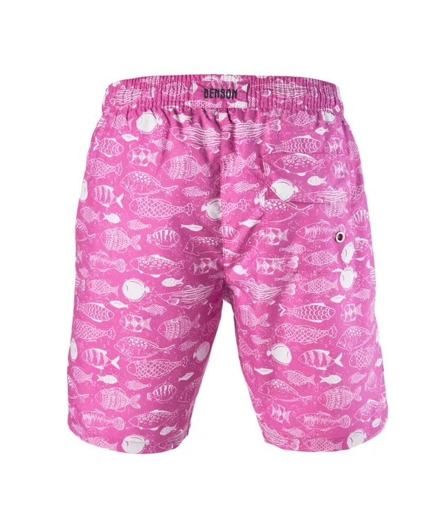 Get set for beach weather with these swim trunks from Benson. Crafted from lightweight, quick-drying fabric, this style features a drawstring waistband and mesh inner brief for ultimate comfort, while the three pockets and an eye-catching fish pattern complete the standout pair. From poolside to patio, you’re good to go!